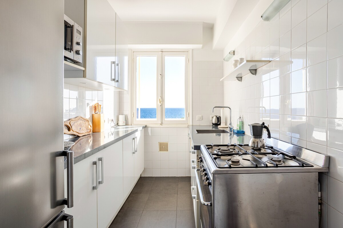 Appartement luxueux, très calme avec une vue mer panoramique époustouflante et une place de parking privée au sein de la résidence en extérieur. Un havre de paix situé à 5 minutes en voiture de Monaco, 12 minutes à pied de la plage du Golfe Bleu et de la gare de train (accès escaliers) Très lumineux avec de grandes baies vitrées, balcons, cuisine américaine toute équipée, Wifi internet haut débit, grand écran TV dans salon et chambre, douche moderne à l'italienne, climatisation.