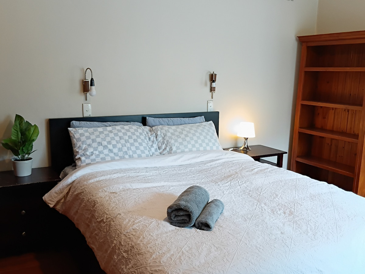 這是一個您可以放鬆身心的房源,擁有僻靜的空間,確保完全的隱私。 寬敞的浴室配有雙水槽,配有香味蠟燭,倒上一杯葡萄酒🍷,並與親朋好友一起躺在牀上,欣賞日落、星空和清晨的日出…… 位於一個安靜、安全的社區,這個區域美麗而寧靜。 開車5分鐘即可抵達格倫購物中心,靠近電車站。 與心愛的人一起展開浪漫旅程。