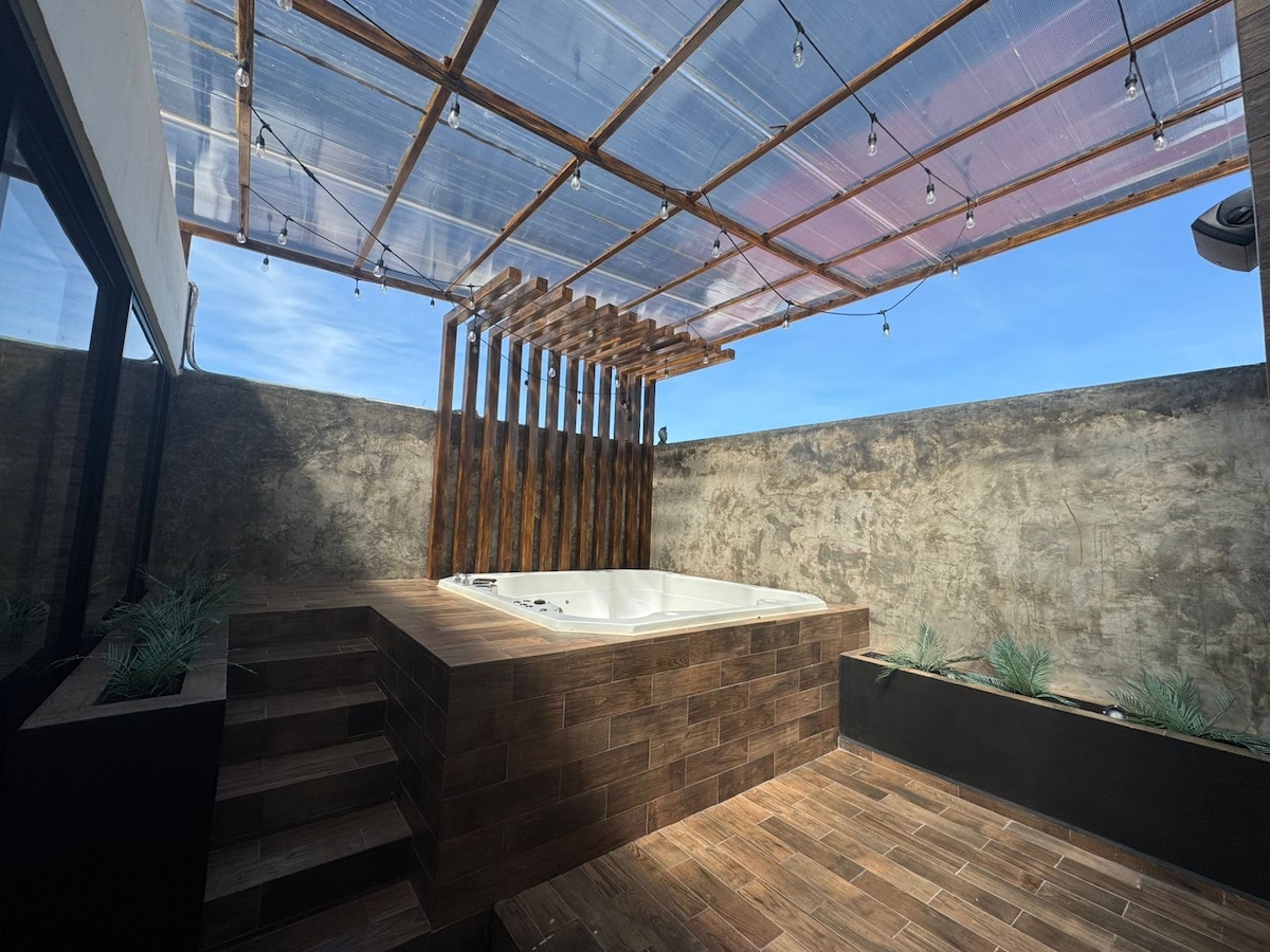 全套房子有3間臥室,地理位置非常好,住宅-商業區域,有3間臥室、4張牀、最多10位房客、2間全功能浴室和2間半浴室、配有75英寸智慧電視的客廳、可容納6人的餐廳、配有冰箱、微波爐、爐竈和基本廚房用具的廚房;您會發現一個帶烘乾機的洗衣區域,包括一個家庭健身房。 在這棟房子裡,您會發現一個完全私密的地方,價格實惠,探索這座城市的所有奇觀。
