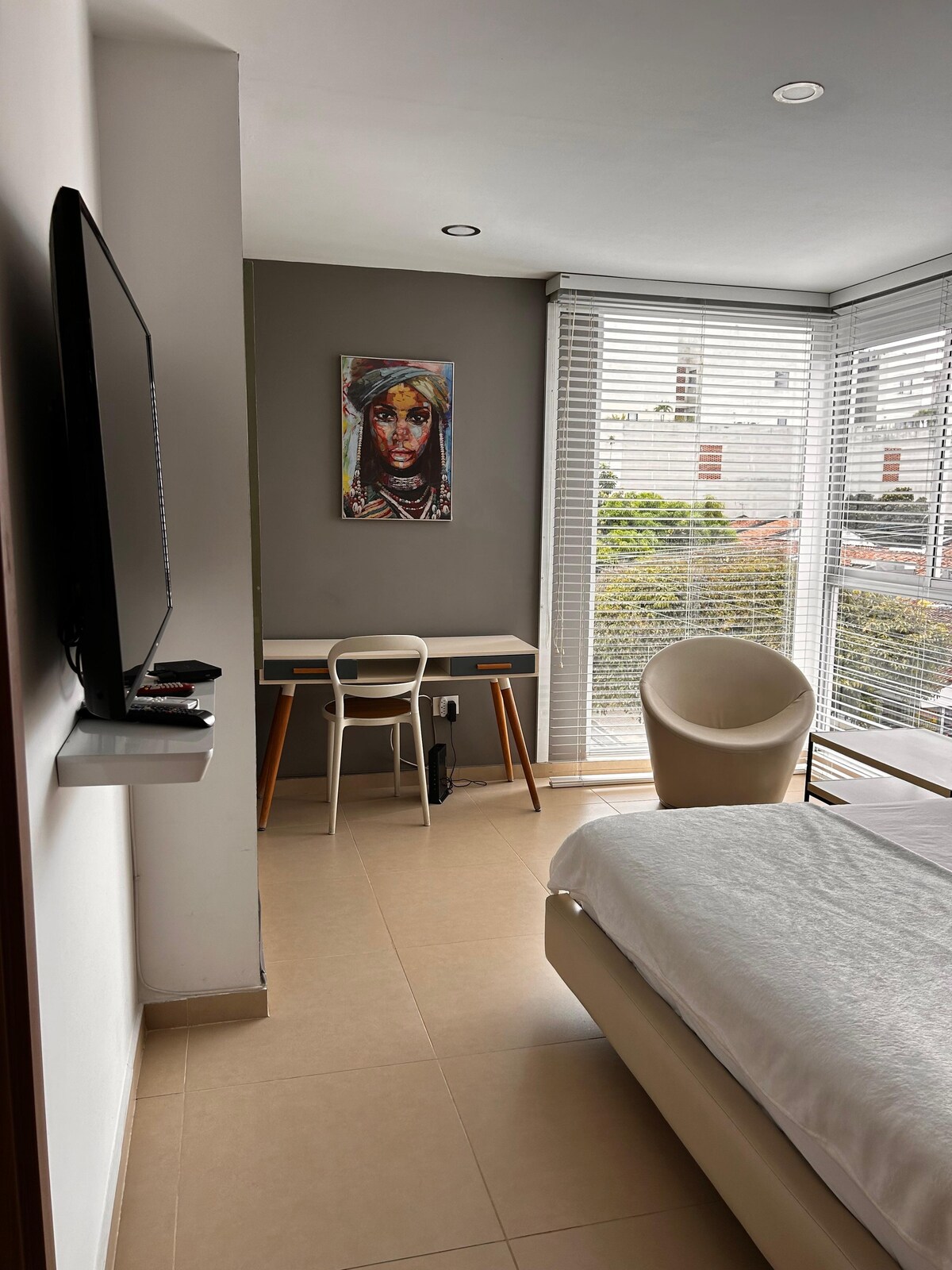Loft de Lujo en el sur de Cali ideal para ejecutivos y turismo Médico. Ubicación TOP: A 5 min de la Clínica Valle del Lili y C.C. Jardín Plaza. Disfrute de WiFi 5G (500 mbs), A/C, Agua Caliente y un espacio de trabajo funcional. Smart building de acceso 100% autónomo con ZONAS COMUNES TOP: - Zona Coworking. - Lavandería GRATIS (Torre Lavado) - Maletero para guarda equipaje. - Wellness en terraza. (Jacuzzi con hidromasajes/agua caliente es compartido para huéspedes del edificio)