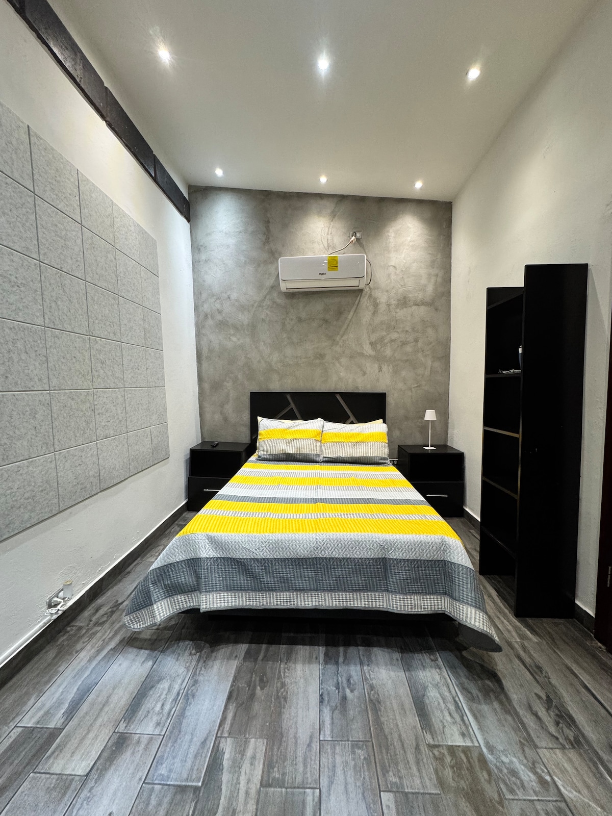 Ideal para una o dos personas. - De 10 a 15 minutos del consulado. - Minisplit frío y calor - Spot Lights - Piso de porcelanato. - Recién remodelado. - TV - Wifi - Agua caliente -Netflix CHECK IN, CHECK OUT: - El Check in es a las 13:00 hrs, es posible ingresar antes si no hay huéspedes en ese momento y el departamento se encuentra limpio - El Check out es a las 11:00 a.m.,flexibilidad de ampliarlo si no llegan huéspedes ese mismo día. NO EXPEDIMOS FACTURAS.