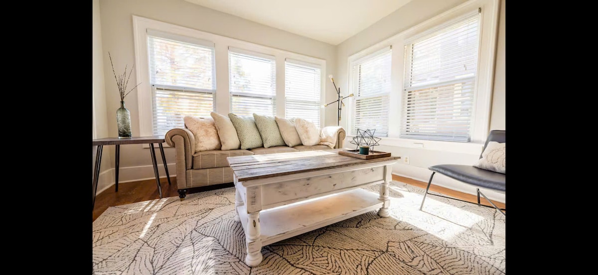 採用自然紋理、大地色調和極佳的自然光線設計,確保您不會想離開的舒適、平靜的氛圍!雙人主套房配有2間標準雙人床和2間套房私人浴室,非常適合2對情侶、家庭、專業人士或任何想住在OKC市中心並獲得當地體驗的人。PLAZA是俄克拉荷馬市最好的藝術區,步行僅3個街區即可抵達美食、世界一流的街頭藝術、咖啡、當地商店、節日、現場音樂等。俄克拉荷馬市中心車程5分鐘!