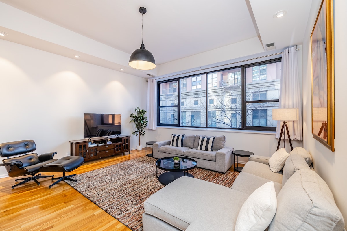 芝加哥南環的現代超寬敞2間臥室閣樓。位於格蘭特公園、士兵球場、博物館、麥考密克廣場等地的中心位置!步行和公共交通分數為97分,輕鬆享受芝加哥的美妙餐廳、酒吧和購物選擇。我們的閣樓擁有令人難以置信的自然光線、豪華的高天花板和足夠的空間,可容納您的整個團體。 房客總是對我們提供的空間大小和現代化設備感到驚喜。