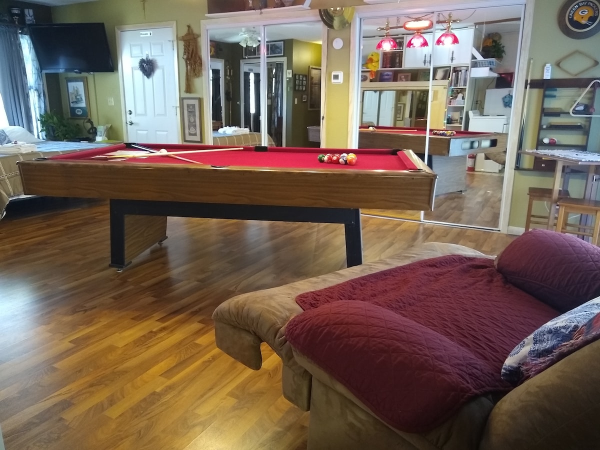 您的私人家庭湖泊度假勝地!全面更新、安靜、放鬆,但現代化。在露臺或野餐區放鬆身心,欣賞湖景。從碼頭拋出一條繩索,或跳上提供的皮艇或迷你浮筒!在全新按摩浴缸和令人驚嘆的雙淋浴間中享受溫暖的浴缸,然後在電壁爐前舒適地觀看電影!包括烤肉架和平面爐。大閣樓配有2張雙人床和主臥室配有特大床。非常適合適在湖上留下無價的家庭回憶。還有光纖網路!