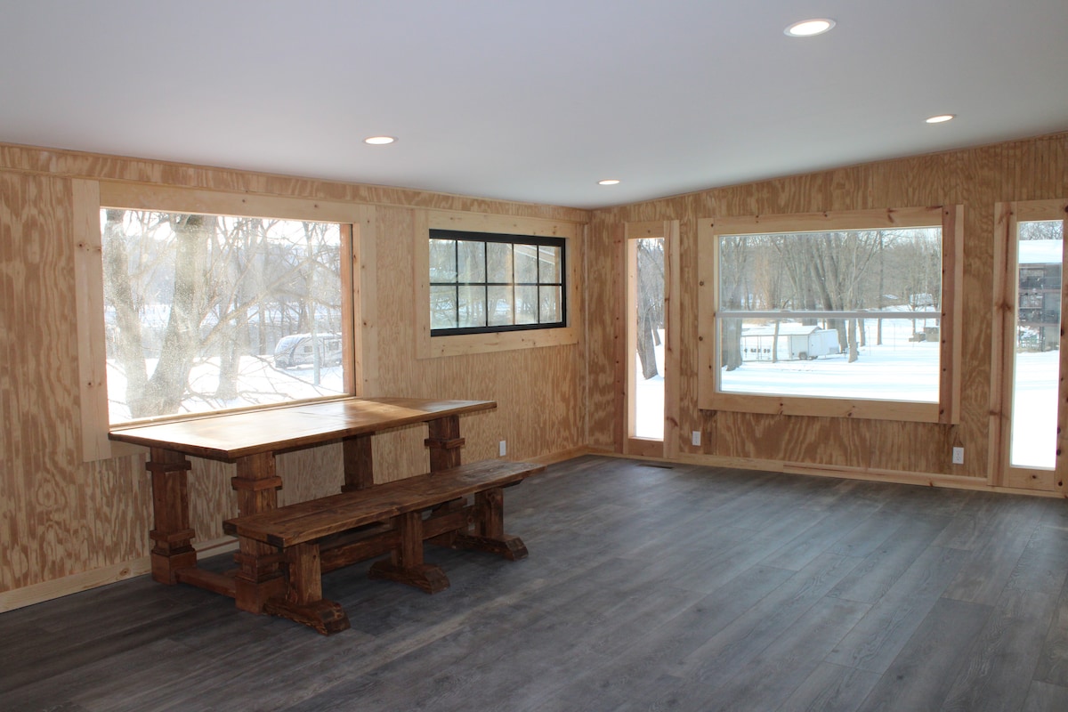 這座獨一無二的物業坐落在俄亥俄河畔,佔地 4 英畝。 享受觀鳥、日光浴、釣魚以及欣賞巨型駁船經過的樂趣。 空間寬敞,可以盡情伸展四肢、玩遊戲、在河畔燃燒篝火,或是舉辦家庭燒烤聚會。 這間旅居的內部乾淨舒適;樓上有溫馨的小木屋、閣樓和日光房,樓下則採用現代化裝潢、配備智能電視、寬敞的睡房,並可向南欣賞日落時分的河景。