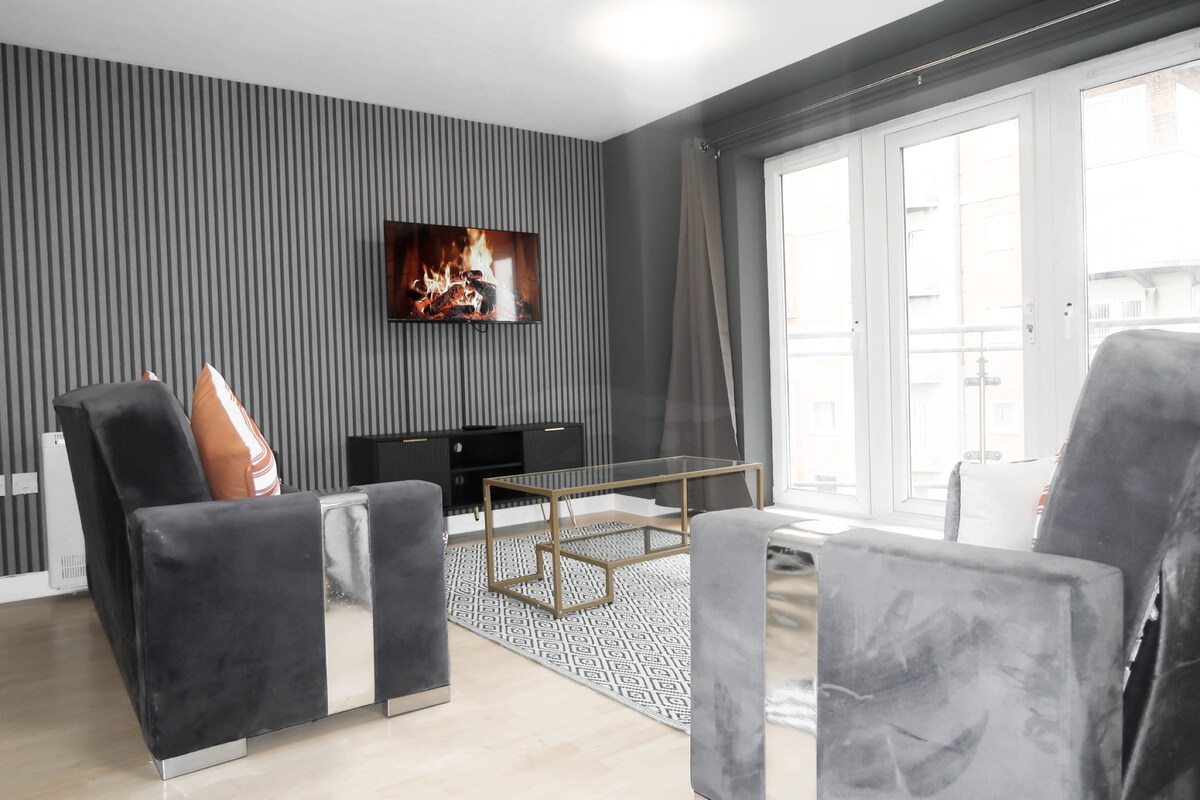 Modern, spacious, clean one bedroom self contained flat with a well equipped kitchen including washing machine, fridge freezer, oven, & microwave. All towels provided. A lounge area which includes a comfortable 2 seater reclining sofa while watching a Full Sky Q package (movies & sports), Netflix, Prime & Paramount. Close to Festival Place which includes restaurants bars and shops, train station and the Anvil & Haymarket theatre. Allocated driveway parking directly outside the front door.