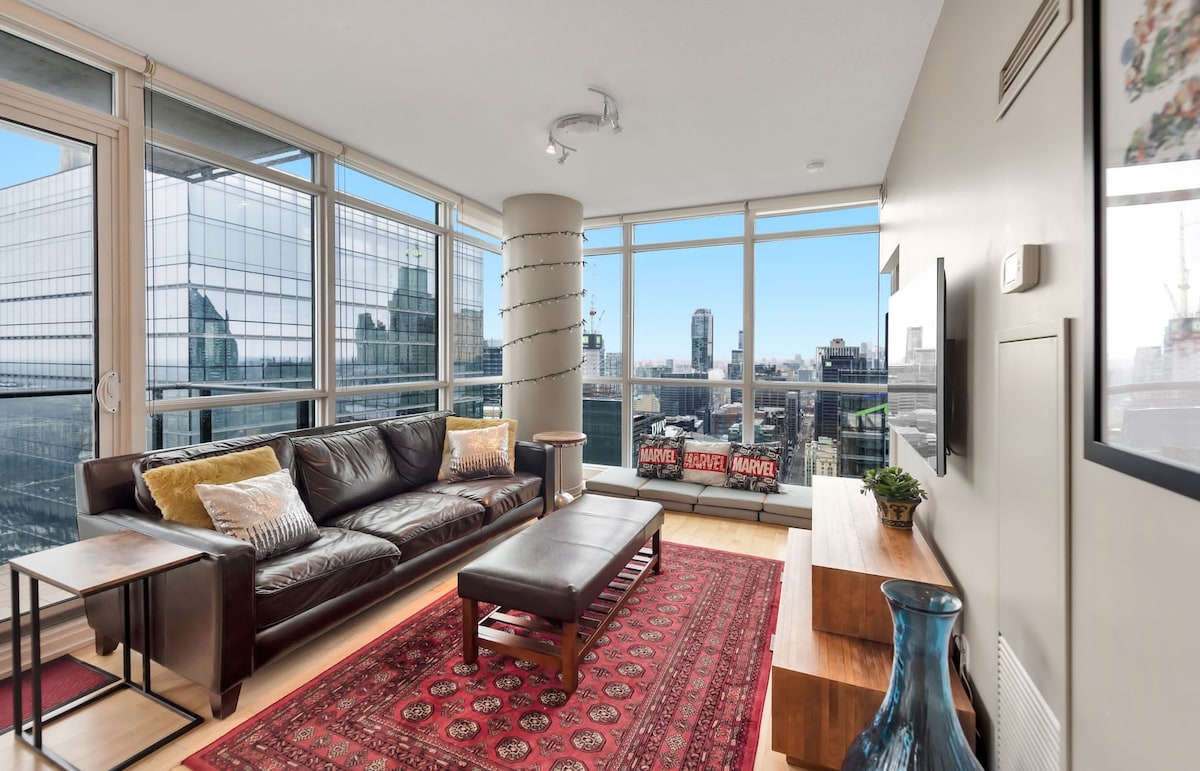 🌟請先向下捲動,然後點擊「發送訊息給旅居主人」,我們會向你發送預先批准。 請勿發送預訂申請🌟 這間舒適的公寓位於多倫多市中心充滿活力的娛樂區,最近經過新裝修並配備齊全。 就在Union Station、CN Tower、Scotiabank Arena和Rogers Centre旁邊。 享受65英寸電視,配備Netflix、室內和室外泳池、桑拿、熱水浴缸、燒烤和室外休息室。包括免費泊車。