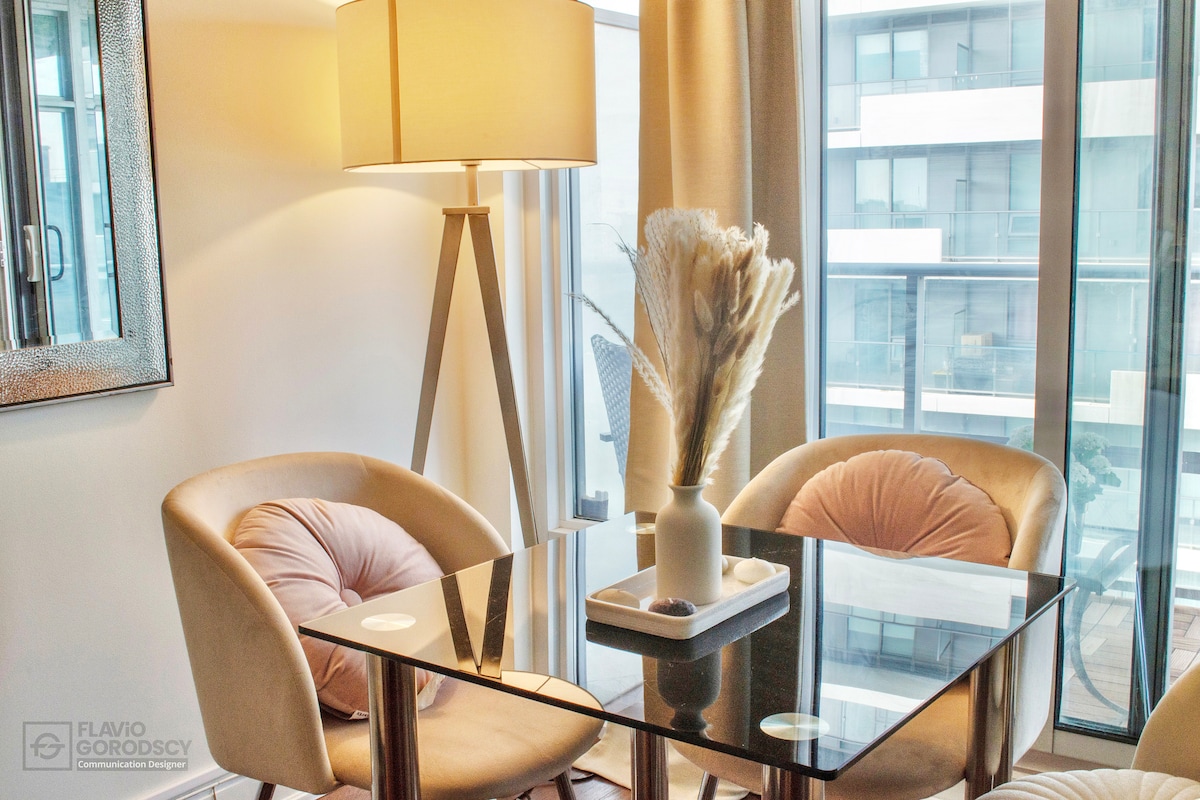 體驗這個獨特而寧靜寬敞的度假勝地的奢華體驗。 在您的私人陽臺上欣賞CN塔和多倫多天際線的絕佳景色。 這個時尚的空間提供充足的睡眠安排,包括一張加大雙人牀、雙人牀和雙人牀,提供舒適和便利。 步行即可抵達餐廳、購物和娛樂場所。 屋頂露臺,可欣賞迷人的城市景觀。 你永遠不知道你會在電梯裡遇到什麼著名藝術家!