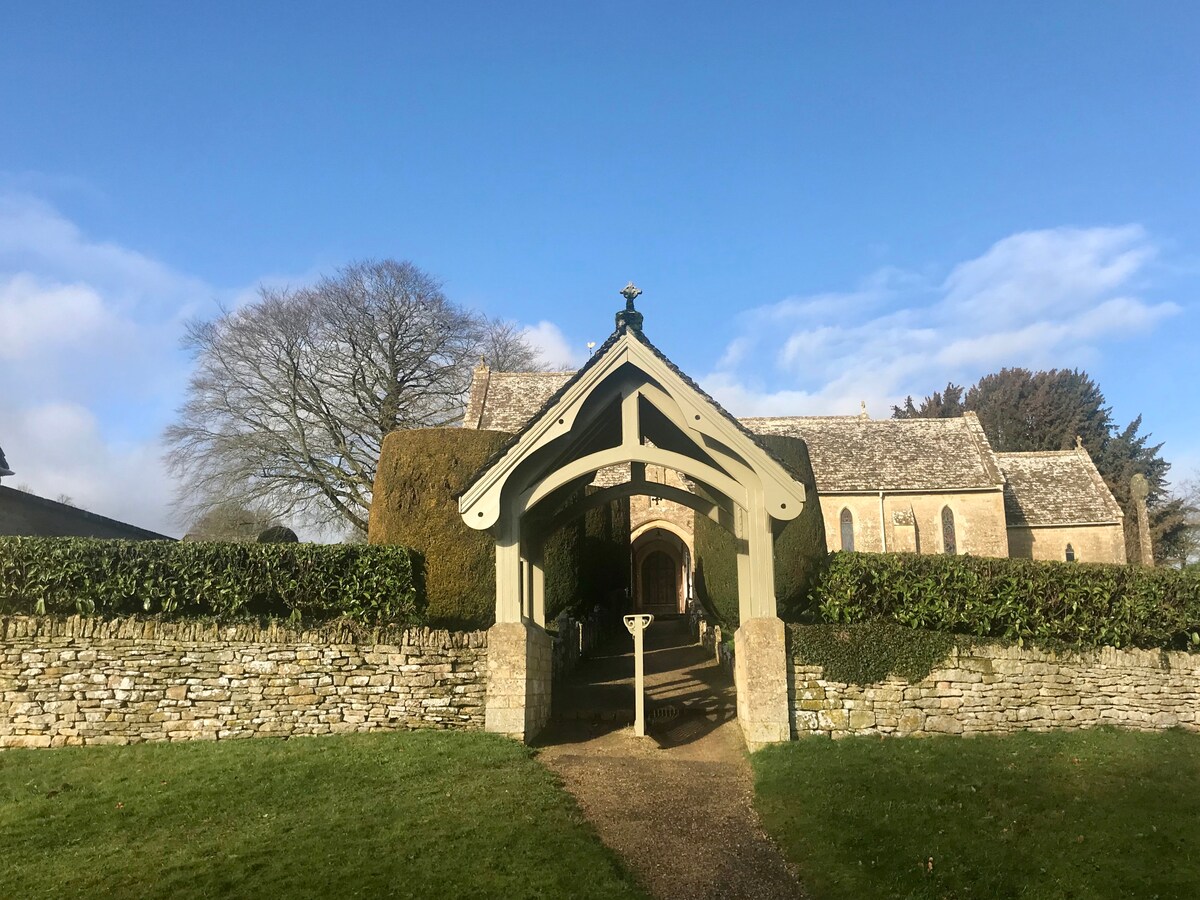 這個鄉村度假勝地提供寬敞舒適的住宿空間,景觀非常好。 開放式一樓通往朝南的露臺(獨自使用)。樓上有一間大臥室(超級加大雙人床)和一個可俯瞰花園景觀的捲簾浴缸。 樓下淋浴/衛生間私人停車位。如有需要,房東可隨時提供協助。 這個寧靜的鄉村是探索科茲窩(Cotswolds)和沉浸在榮耀的鄉村的理想基地。享受優秀的遛狗和騎自行車,直接從門口就可以開始。