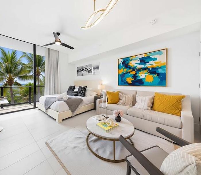 🌊 椰林Arya飯店19樓海景單間公寓 🌴 單間公寓•可供4人入住•陽臺•泳池和健身房通道•海景 在Hotel Arya的這間高樓層單間公寓,沉浸在令人嘆為觀止的海景和帆船景觀中。 配有加大雙人牀、標準雙人沙發牀、遮光窗簾和颶風影響的陽臺門。 享受飯店設施,包括泳池、健身房等,坐落在適合步行的椰林中心!