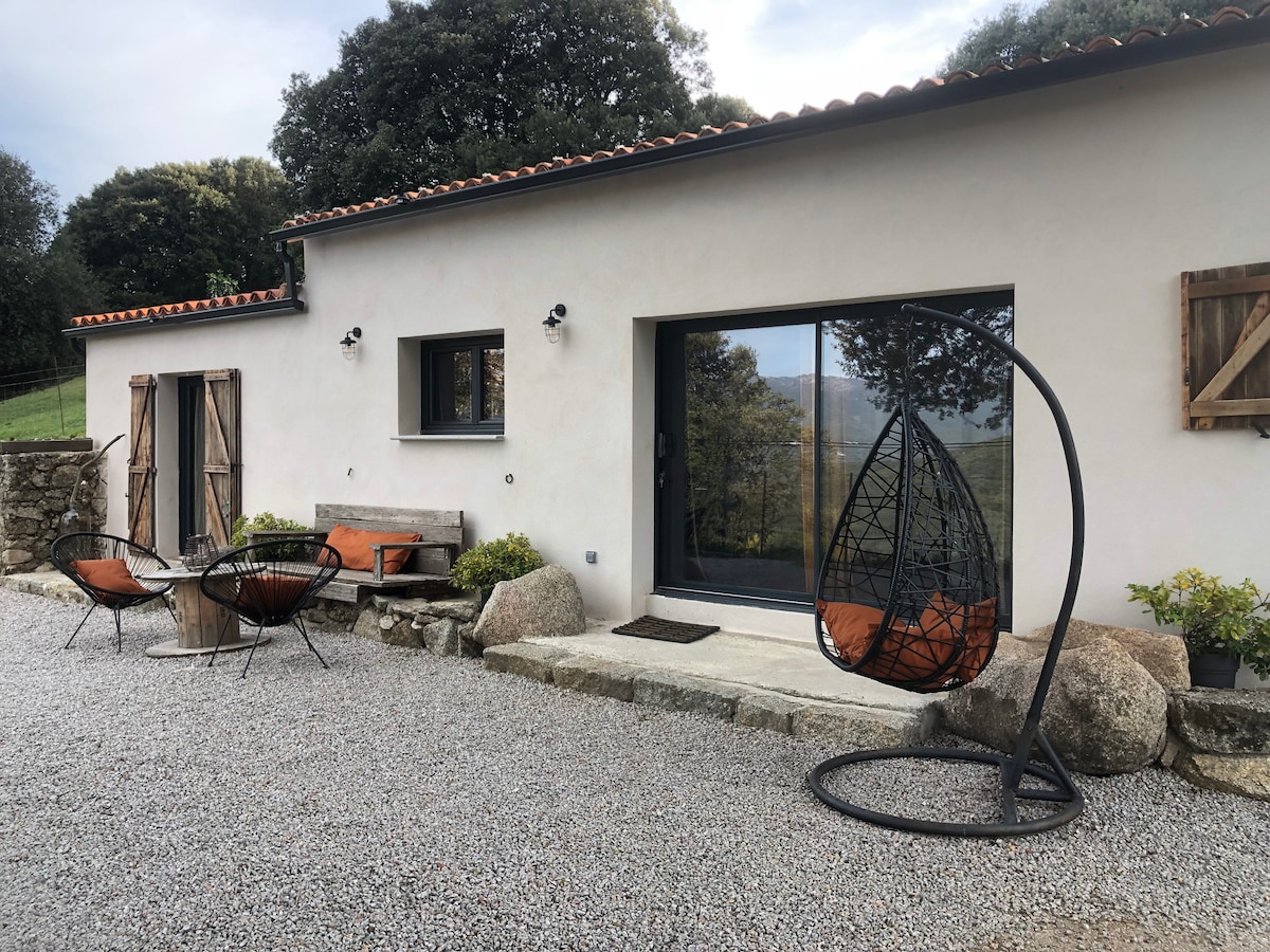 Cette maison de style Caseddu Corse se situe sur les hauteurs du golfe du Valinco dans le hameau de Figaniella. Il dispose de tout l'équipement nécessaire pour faire de votre séjour un moment inoubliable. Ici tous les éléments sont réunis pour profiter pleinement de la montagne mais aussi de la mer qui se trouve a 15 minutes en voiture. La terrasse avec une splendide vue vous procurera un sentiments de dépaysement total.