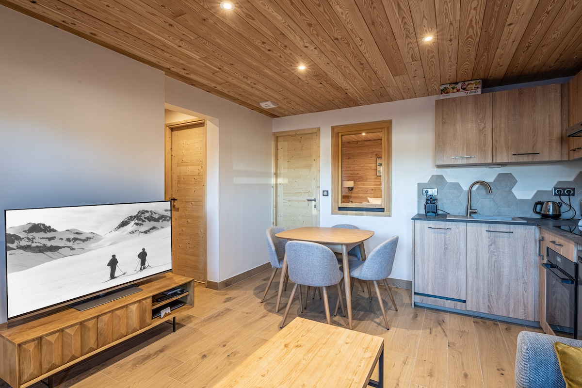 位於滑雪道旁的獨特單間公寓 - Courchevel 1550 這間翻新的單間公寓位於雪地前方,位置極佳,可在熱門的 Lou Rei 住宅區滑雪。距離商店、餐廳和纜車僅幾步之遙,並設有安全的有蓋停車場。 冬季,Grangettes 纜車可在 5 分鐘內將您送達谷雪維爾 1850(早上 8 點至晚上 11 點)。 享受精緻的環境,結合舒適、優雅和實用性,欣賞壯麗的山景。 ☀️🏔️❄️