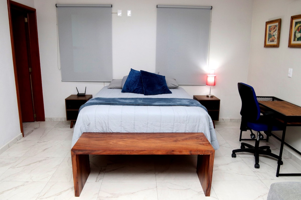 你是因公到科利馬州出差嗎? 此空間旨在讓你感到舒適、高效和方便。 完全獨立的私人房間 -雙人牀。 - 房間內的浴室。 - 螢幕。 -辦公桌和衣櫃。 -無線網絡。 -空調。 靠近科利馬大學(5分鐘)、Feria de los Santos (5分鐘)和巴士站(7分鐘) -非常適合學生或工人。 簡單、舒適、實用。 * Si Bacturamos +增值稅*