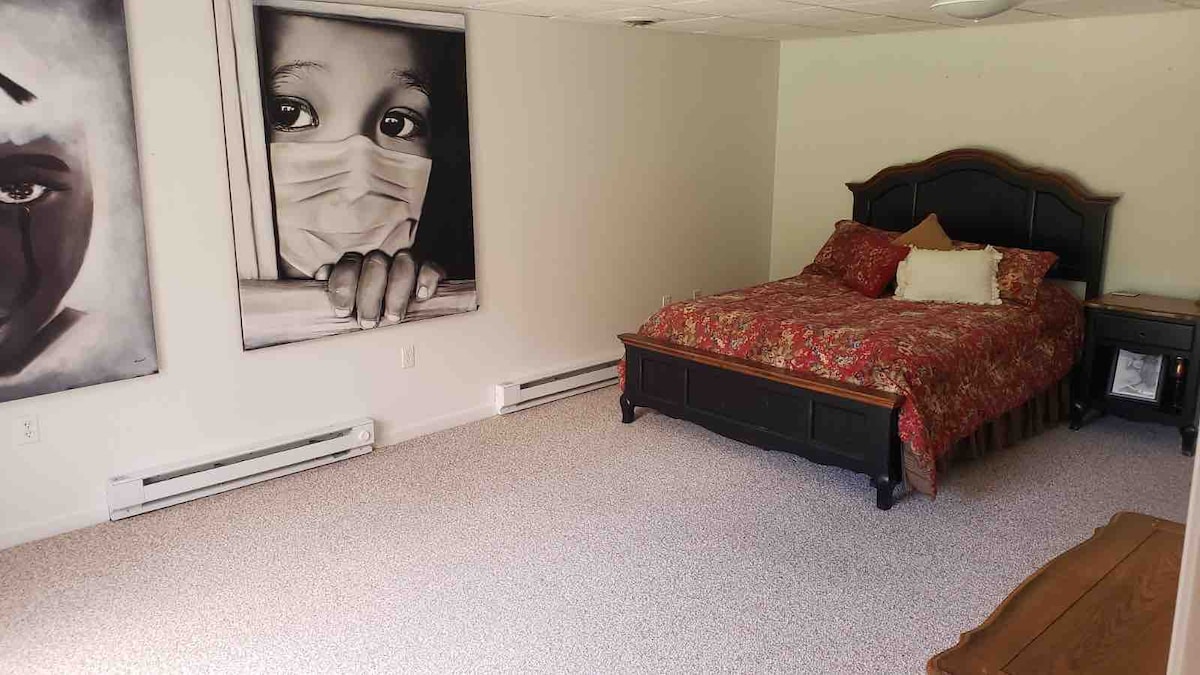 歡迎來到您的家外之家! 無須支付清潔費。 這間Airbnb旅居擁有超過900平方英尺的起居空間,配備私人睡房、電視、浴室、淋浴間、小廚房、微波爐、迷你冰箱、咖啡機和烤箱,以及一個起居室,讓旅人有足夠的空間放鬆身心。 試試我們的空氣曲棍球和臺球桌,或在我們的92英寸劇院螢幕上放鬆身心,欣賞電影。 包括WIFI和Roku電視。 房源配有室外監控攝影機。