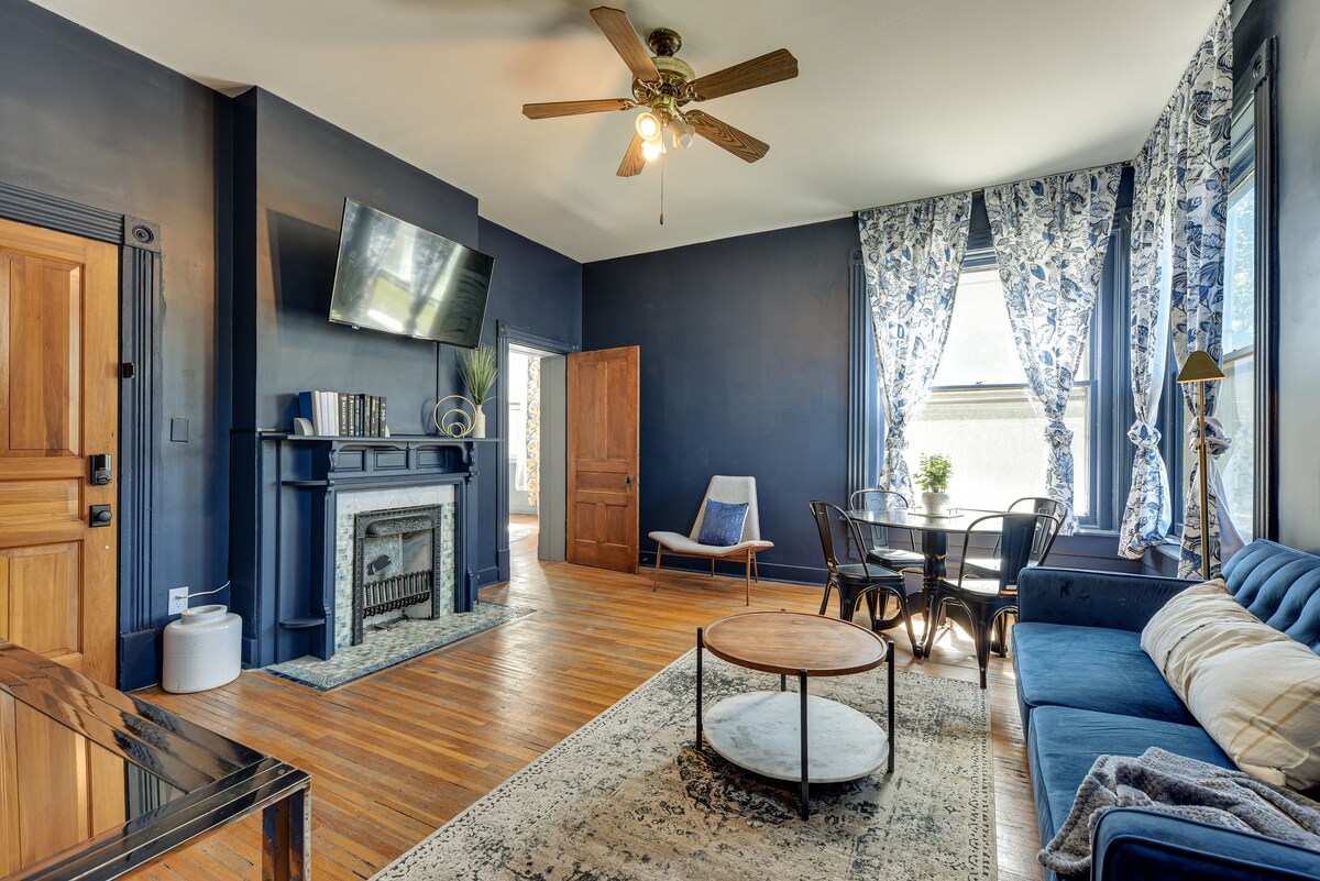The Livingston Flat is located in historic German Village, directly above one of Columbus’ most beloved bars, Club 185. This charming, 1 bedroom apartment has all the amenities you need to feel right at home. Being just blocks away from downtown, you can easily walk to the best places for dinner and drinks Columbus has to offer. Enjoy the warmth of the gas lanterns on the brick lined streets, as you stroll past the neighborhood's gorgeous historic homes and beautifully landscaped gardens.