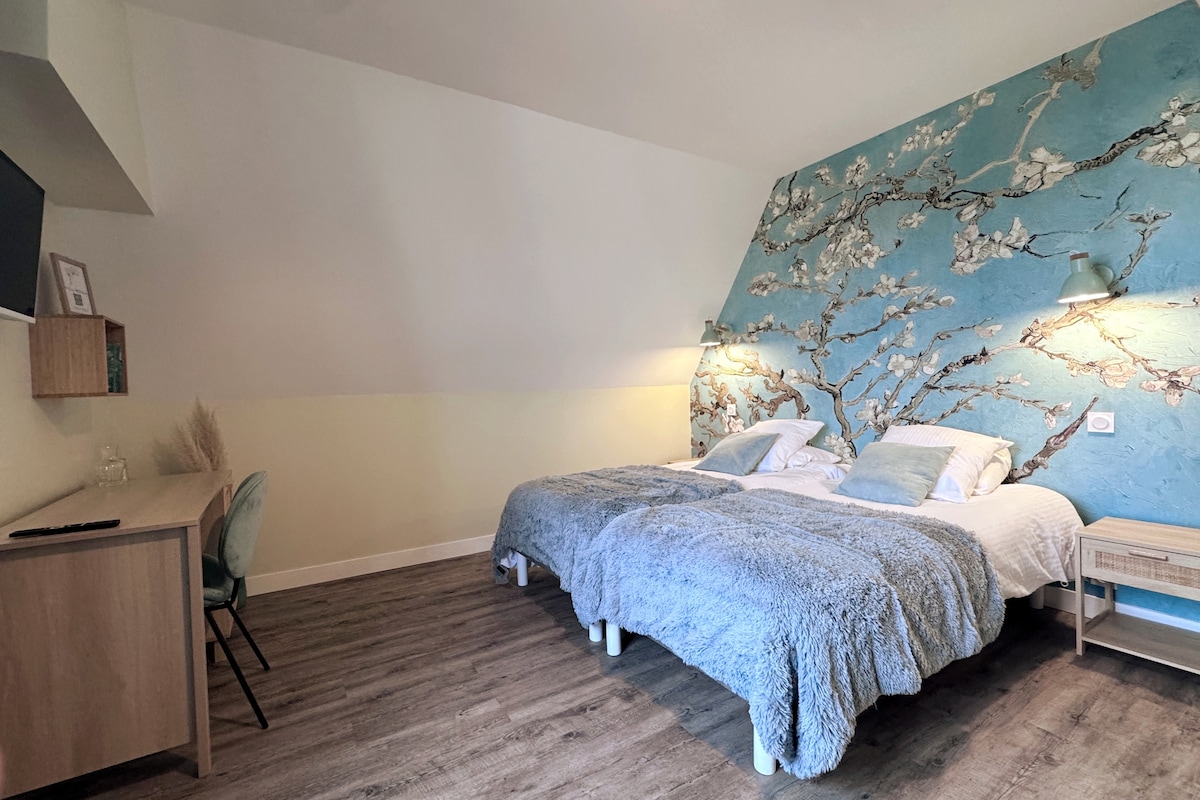 Chez Desnos is a lovely apartment in the historic city center of Fougères. It has a private entrance, 2 adjoining bedrooms, and an open plan living area. Only a 4 minute walk to the medieval Castle and an easy 2 minute walk to shops and the Farmer’s market. A perfect place to enjoy shopping, restaurants, or just relax with family and friends. The apartment is ideally situated for easy access to must-see sites in Fougères and further afield in Brittany, Pays de la Loire, and Normandy.