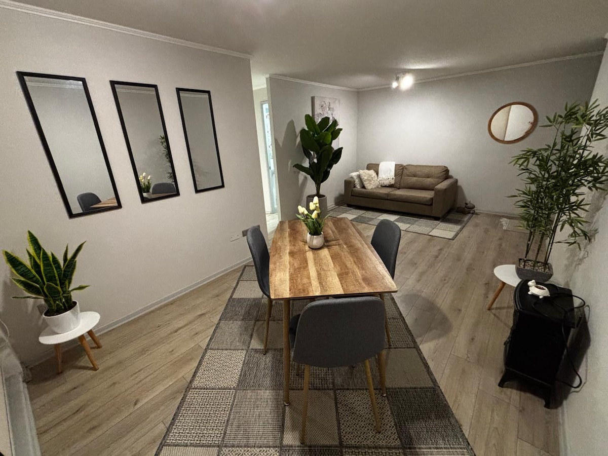 您將入住全新、舒適、設備齊全的公寓,配有停車位,特別適合短期或長期住宿。有 2 間臥室,每間都有獨立浴室、智慧電視、有線電視和 WiFi。辦公桌、洗衣機、客廳、設備齊全的廚房、露臺和私人停車位。 連接主要大道,距離康塞普西翁市中心 7 個街區,靠近超市、公共交通、公園和自行車道。開車、乘坐公共交通工具或騎自行車都很方便。