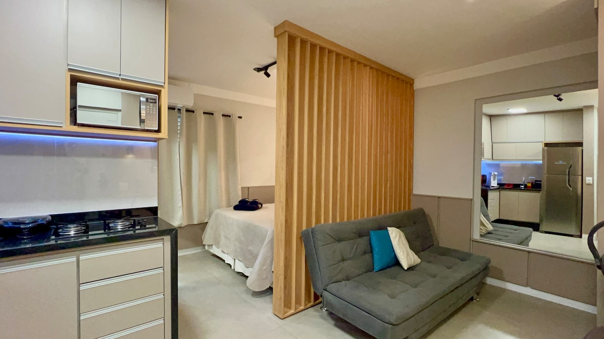 獨特的空間。享受真正的保利斯塔納體驗!44平方公尺的公寓, 1間配有雙人床的臥室(隔音窗)、配有65英寸電視的客廳、WiFi、廚房、新裝修的公寓、陽臺、免費停車位、靠近幾個商場、便利商店、美妙的餐廳、位於聖保羅最酷和最著名的街區、靠近地鐵( 400公尺)、Av Paulista的美麗景觀。最多可容納3人(客廳沙發床1人)。24小時接待處。