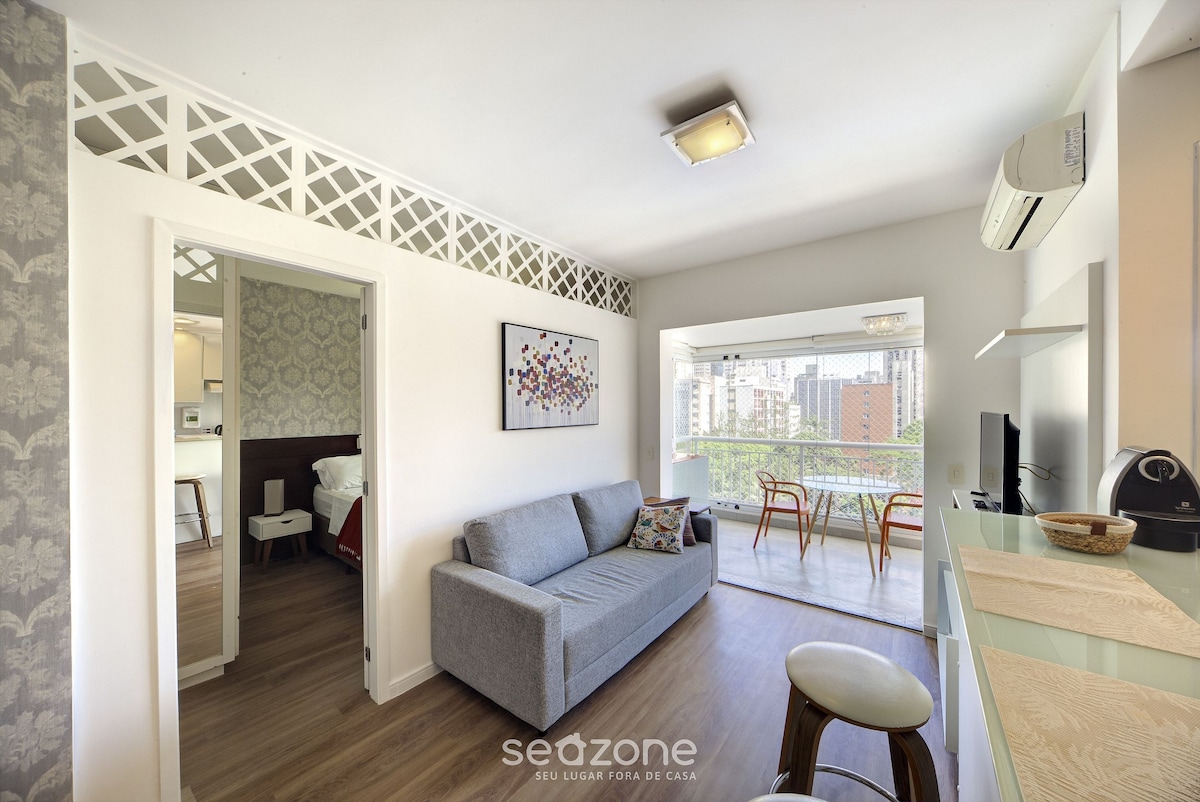 46 平方公尺的公寓,配有臥室、客廳、開放式廚房(無爐台)、浴室和陽台。距離保利斯塔大道(Av Paulista)2個街區,距離奧斯卡弗雷爾街(Rua Oscar Freire)4個街區,位於聖保羅花園區(Jardins de São Paulo)的高級街道上。靠近餐廳和商店。住宿包括電視套餐、WiFi和大樓內的1個停車位。大樓作為酒店運營,提供24小時接待、每日清潔、游泳池、壁球場、桑拿房和免費健身房。飯店餐廳服務需另行預約