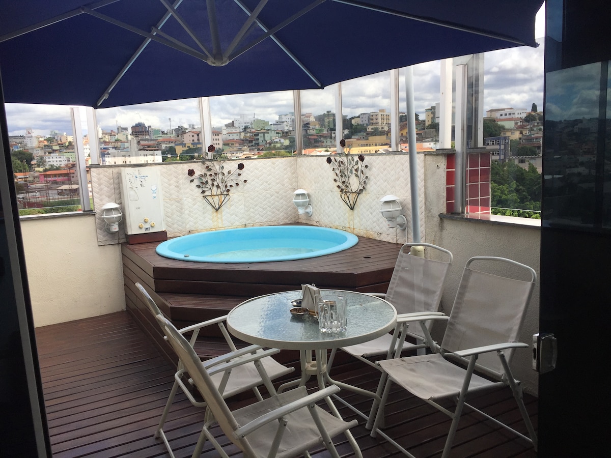 2間臥室公寓,其中1間有冷氣。 全功能廚房、電視房、餐廳和WiFi。 美食區,配有燒烤和私人溫水水療浴缸,可容納7人,景觀美麗。 房間內的天花板風扇(空調房和浴室除外)。 浴室配有毛巾。1個停車位。 距離Contagem購物中心250米。 安靜且安全的地方。 非常適合家庭或休閒。4樓,大樓沒有電梯。