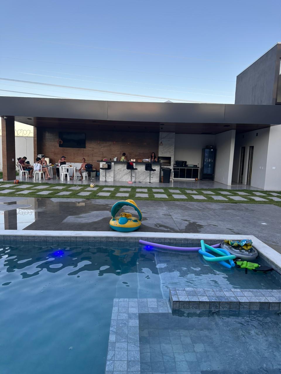Agradecemos o interesse em estar nesse lugar maravilhoso, certeza que você, sua família e seu amigos vão adorar e curtir muito ! - Pisicina - Churrasqueira - 6 banheiros - 4 suítes - Utensílios de cozinha - Cook top 5 bocas - Cervejeira - Geladeira - Mesa de madeira para 20 pessoas - Mesa de piscina com ombrelone para 12 Pessoas - 6 Espreguiçadeiras para piscina