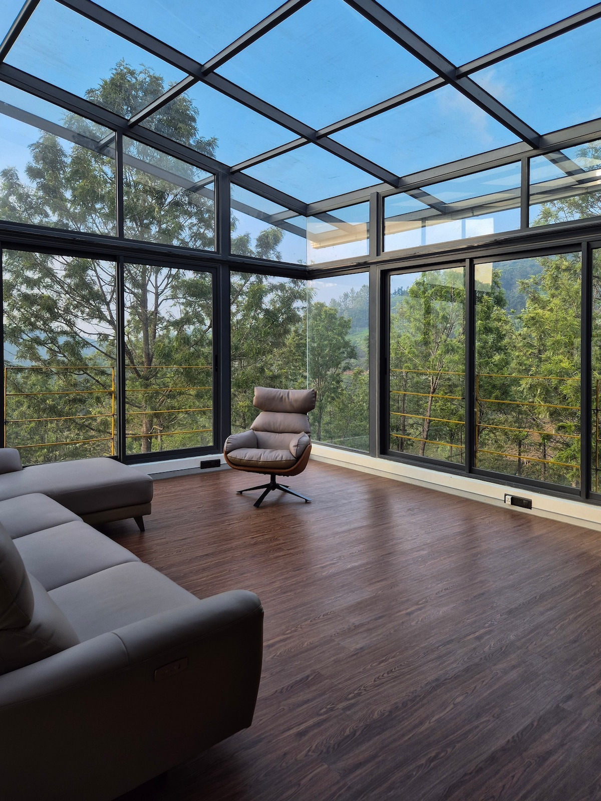 Wake up to breathtaking Nilgiri mountain views in our glass villa with a private patio and tea garden. Step outside to a lush private tea garden and a charming covered patio surrounded by a flower garden - perfect for morning walks, chai breaks, and sunset views to relax in. Home-cooked meals (breakfast, lunch and dinner) are available on request for a truly cozy stay