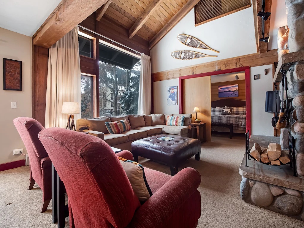 來到我們位於銅山中心村中心的美麗1間臥室公寓享受度假。山景和池塘的迷人景觀,您可以享受滑雪、高爾夫、餐廳、咖啡廳、購物等。 住宿期間提供設備齊全的廚房和床單。舒適的石製壁爐是客廳的焦點,包括一張雙人沙發床。 WiFi平均下載速度為42.5 MBPS 短期租賃許可證 #STR21-02196 最多可入住:4人 停車位:1