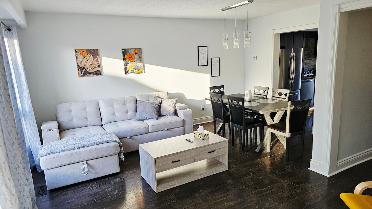 歡迎來到我們全新的、無煙和無寵物、迷人和豪華的兩間臥室房屋,位於Stouffville非常安靜的街區。 這是商務會議、旅行或任何其他原因讓你來到Markham/Stouffville地區後放鬆的好地方。 整個空間(非共用)配有特大床和大床臥室、全套浴室、書桌、步入式衣櫃。 家具齊全的客廳和廚房。 入住這間位於市中心的旅居,快速度假或長期住宿,靠近一切