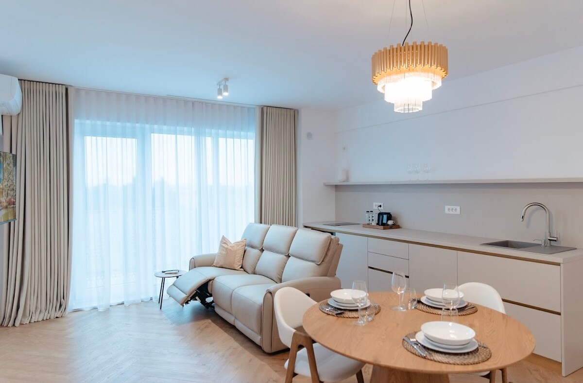 歡迎來到充滿優雅和風格的住宿! 我們的公寓位於Oradea最新的住宅大樓之一,距離市中心和火車站僅幾步之遙。 配備現代化舒適和時尚的家具,讓您感到賓至如歸。 享受免費地下停車場的福利,並透過我們基於代碼的系統輕鬆進入房源。 請放心,您的舒適和安全是我們的首要任務,並採用專業的清潔和消毒流程。