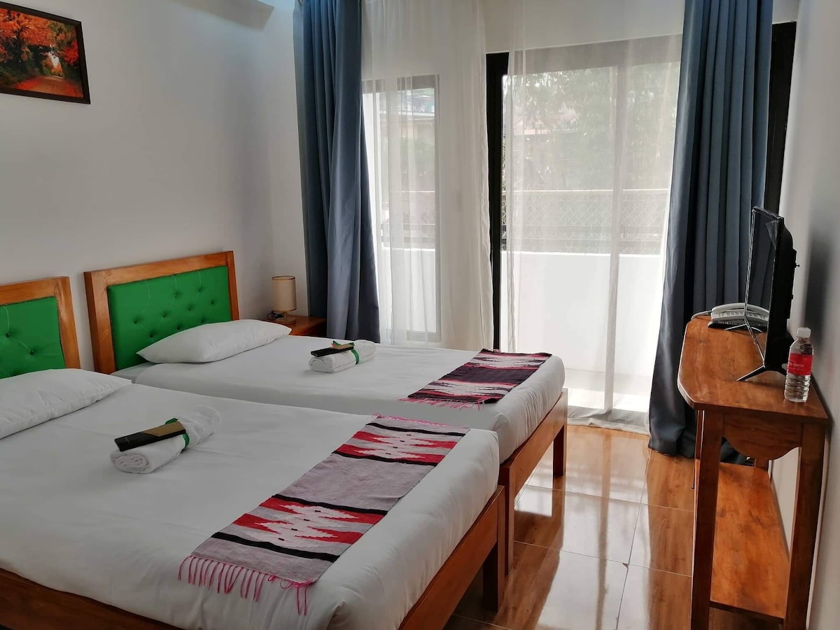 鬱金香標準雙人房( 3-5人) - 2張雙人牀和1張單人牀 -窗戶上的窗簾襯墊,保護隱私(全新! ) 免費WiFi和停車位 -獨立浴室、帶廁所、 -改良淋浴加熱器(新!) 有線電視 -毛巾和洗漱用品 -寬敞通風 距離伯納姆公園( Burnham Park ) 0.5公裏 距離Session Rd -1.7公里 距離SM -2公裏 -只允許攜帶1隻小型寵物,需額外收取1000比索 - 你的寵物在整個住宿期間都必須穿著尿布。