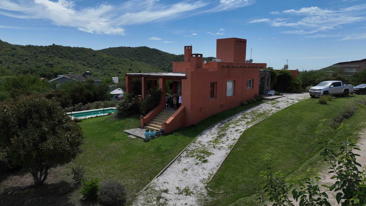 可供2/4人入住的鄉村別墅。 理想的情侶。生物建築,冬暖夏涼涼。 陽光( LED燈和手機USB充電器) + Heladerita + Farol a Kerosenne。 燃木calefón。服裝服務和沐浴用品。 停車場。共用泳池和休息室。 泉水。原生山脈。