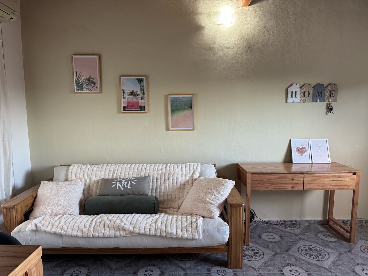 享受這個安靜的中心地帶的簡單。 舒適明亮。 公寓有: - King牀。 -牀單和牀單(毛巾和毛巾) -WiFi - LED電視+ Google電視( Chrome 4k ) -完整廚房: Infusions、Agua Mineral、Pava y Oorno Electrico、Anafe y Heladera with冷凍庫。 -空調和Tiro balanceado加熱器。 -房源內有免費停車位。