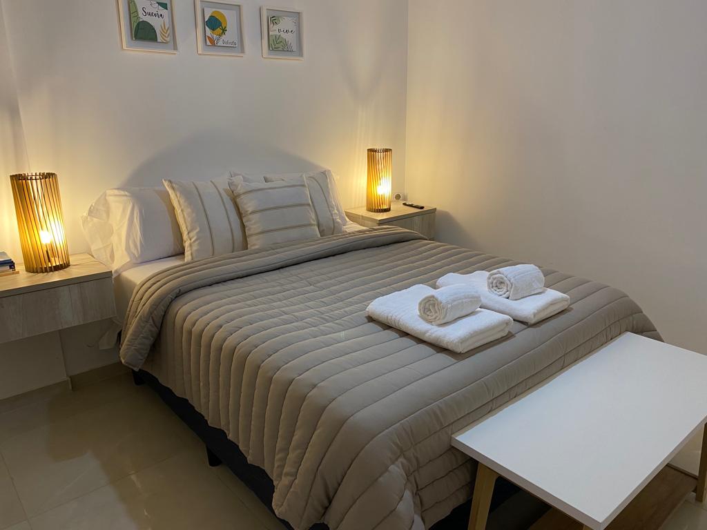 公寓位於市中心,地理位置極佳,靠近Nuevocentro Shopping和Patio Olmos幾個街區。 它位於7樓,非常安靜、溫馨和明亮,餐廳配有電視、Directv和單人牀,廚房配有碗碟、刀具、電動水壺、冰箱和微波爐,一間臥室配有雙人座盒、2臺分體式空調、免費Wi-Fi。 50公尺外,您可以選擇車庫和周圍的一切,讓您住得愉快。