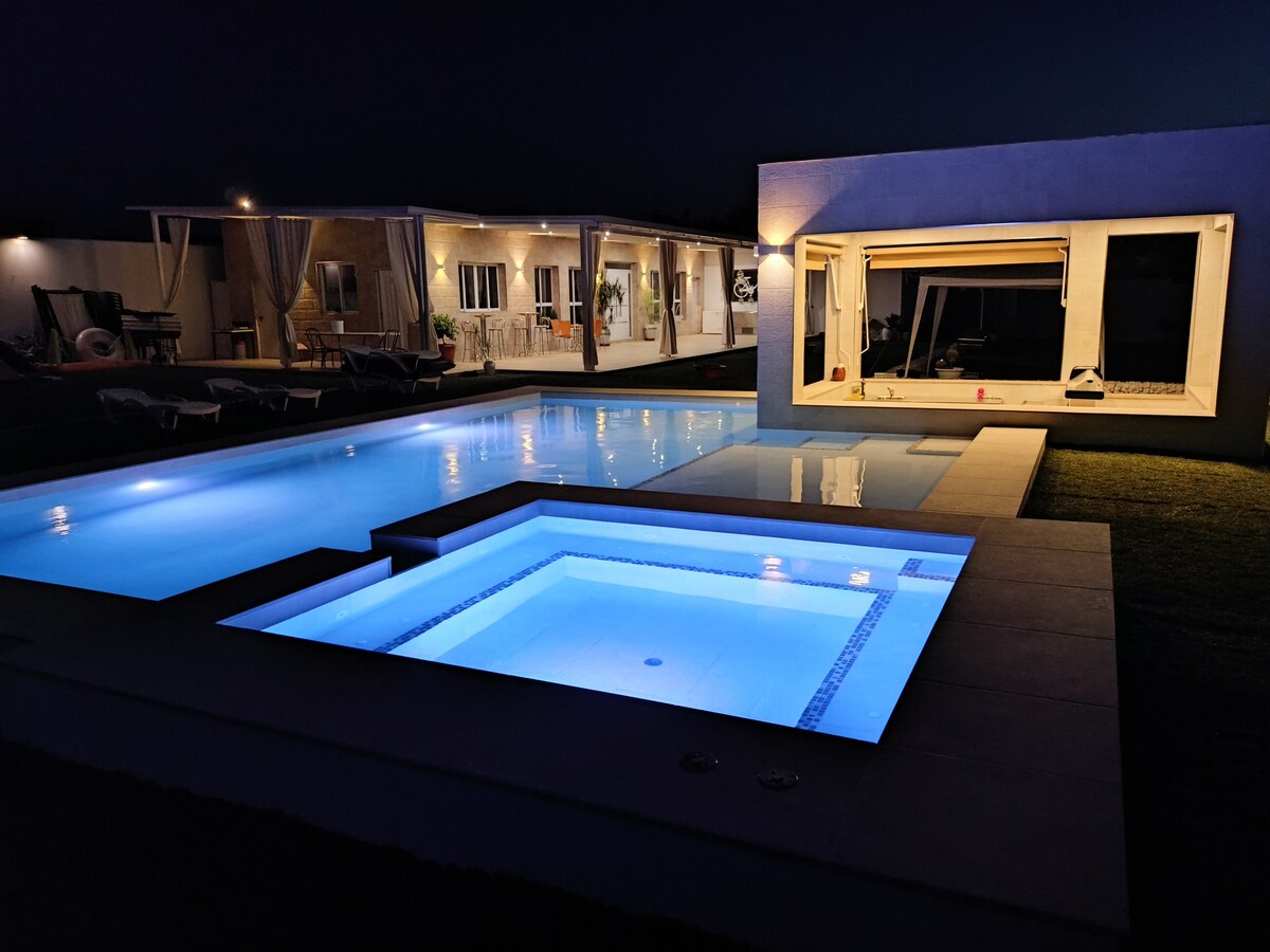Diviértete con toda la familia en este bonito y moderno chalet con piscina privada, jardín artificial,porche con muebles de exterior, Barbacoa y ducha exterior. capacidad para 6 personas. cuenta con 3 dormitorios,dos de ellos con cama de 1,35 y el otro con dos camas de 1,05. Hay dos baños con plato ducha ,en uno hay jacuzzi, que se disfruta bajo suplemento diario (avisad en caso de querer disfrutarlo). el salón comedor con TV de 55",zona de comedor, comparte espacio diáfono con la cocina.