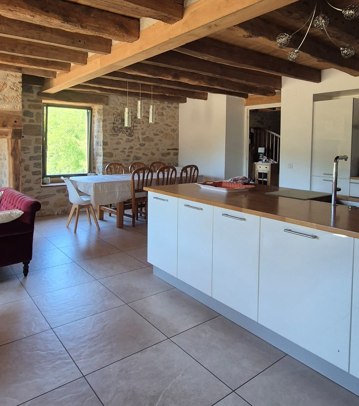 多爾多涅河谷(Dordogne valley)獨一無二的優質房屋:位於一個列入名單的村莊的廣場上,建於15世紀,木板來自18世紀,巨大的石頭樓梯和石牆,大壁爐...許多歷史都包含在一個寬敞(1700平方英尺)的房屋中,配備了所有現代便利設施。 大臥室,每間都有自己的浴室。 地理位置優越,可參觀該地區、Padirac、Rocamadour...也靠近商店和餐廳。 包括床單、毛巾、WiFi和清潔費。