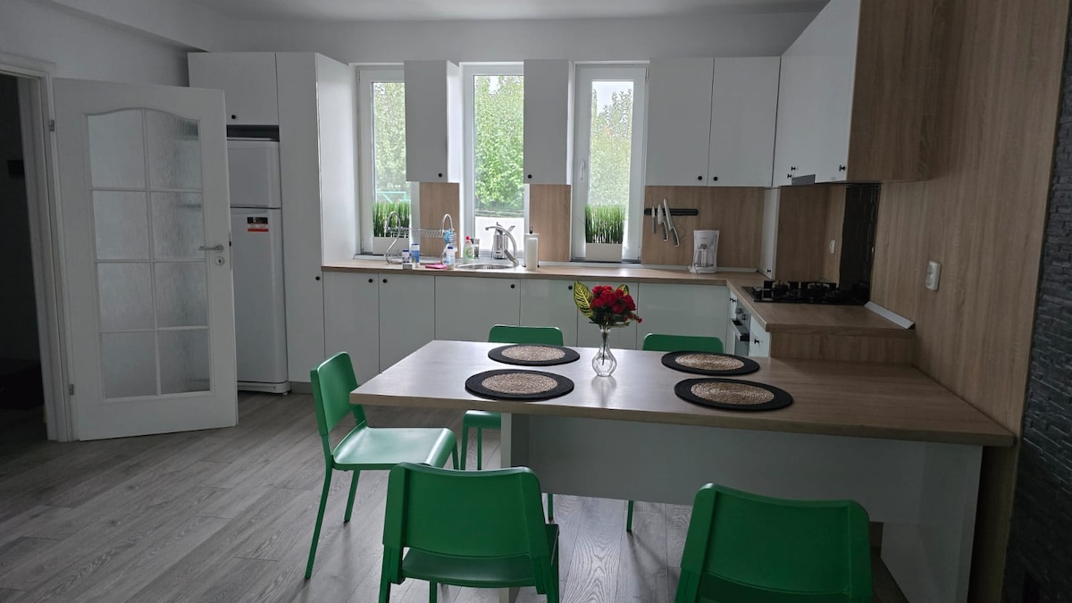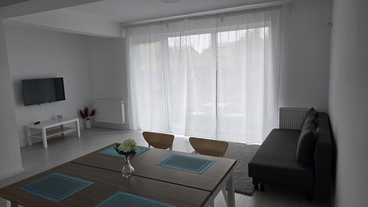 公寓位於住宅區內,靠近幾個商業空間,如: Mega Image、Profi、麥當勞、Leroy Merlin、Jysk。 綜合大樓附近的公共交通。 公寓有一間溫馨的臥室,配有一張1.8公尺寬雙人牀,明亮的客廳配有設備齊全的廚房、沙發牀和寬敞的浴室。 大樓提供所有必要的設備與服務,讓您感覺像在家裡一樣。