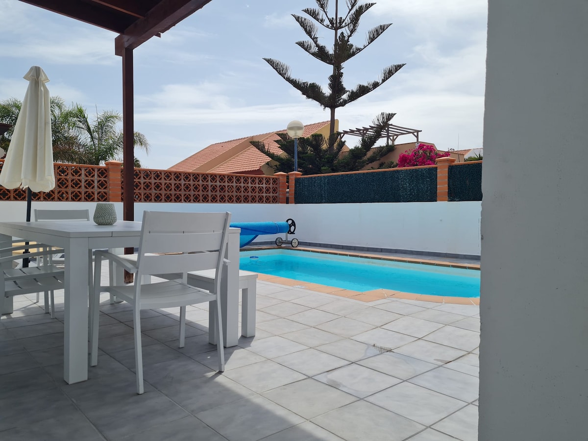 9.13 Bahiazul別墅,豪華私人建築內的豪華別墅。3間套房,配有獨立浴室、客廳、設備齊全的廚房和餐廳。 露臺配有私人泳池(可溫水泳池22歐元/天,水溫26°C )和休閒區域、配有燒烤的屋頂、按摩浴缸和峇裏島牀。 衛星電視、智慧電視、WiFi、WiFi和空調。 在獨特的Bahiazul豪華建築羣中。 非常靠近Dunas de Corralejo ,非常適合6人度過完美的假期。
