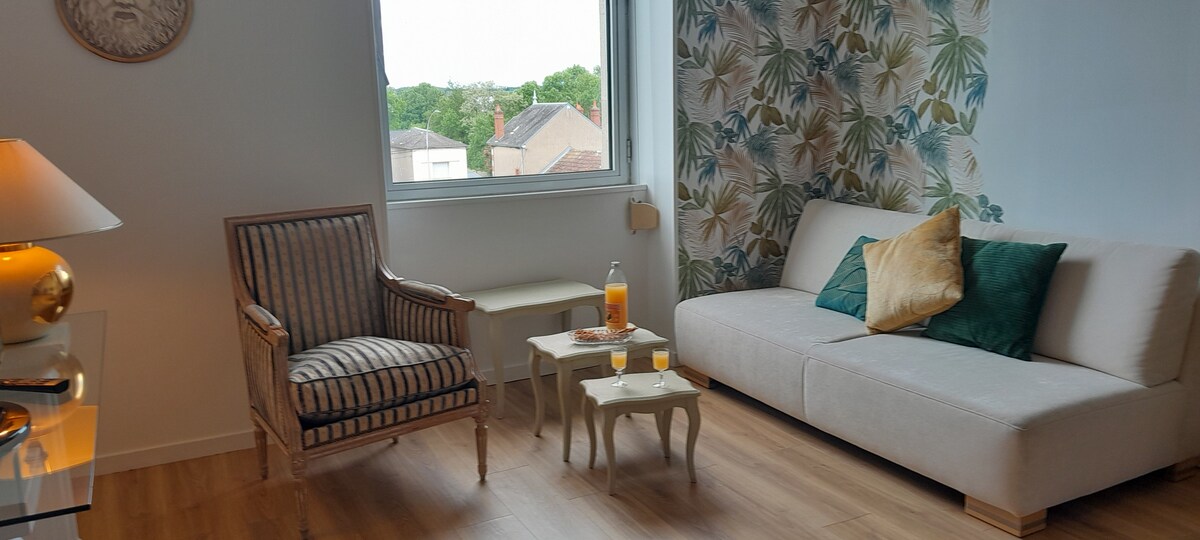 這是一間非常漂亮的公寓,位於一座 19 世紀中產階級房屋的二樓,坐落在百年公園的中心,是《Le Petit Futé》推薦的景點。 這是市中心一個迷人的飛地,步行不到 5 分鐘即可抵達火車站和旅遊中心。 兩間寬敞的臥室,每間都有一張 160x200 的床和一張辦公桌。一張大沙發可作為第五張床。 設備齊全的廚房,與客廳相通,為您提供理想的生活空間,讓您享用豐盛的早餐。