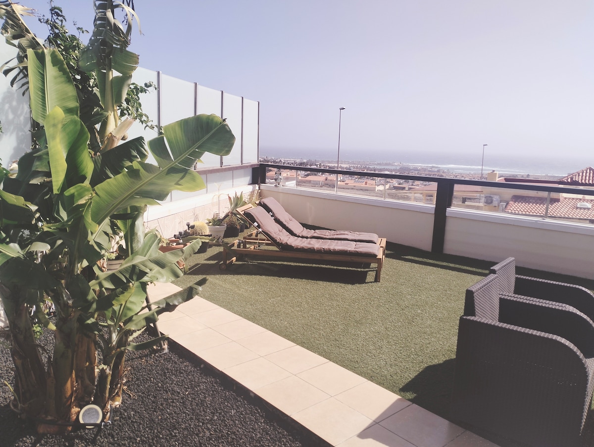 Encuentra el momento de tranquilidad y magia siente el mar como en un barco, te quedaras asombrado contemplando las islas (Lobos y Lanzarote) desde este atico.Esta muy bien ubicado en el pueblo de Corralejo,a pocos metros del puerto deportivo que ofrece gran variedad de excursiones y deportes acuaticos.Todo cercano para ir andando: ocio gastronomico,tiendas,supermercados,centro de salud.. Ayudare a que vuestra estancia sea lo mas agradable posible con total cercania y disposicion; os espero!!