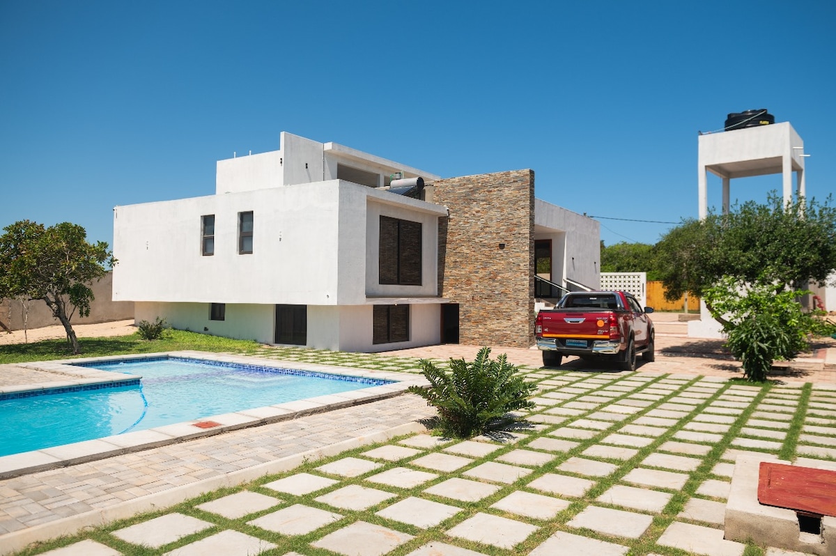 入住溫馨古樸的海灘小鎮Katembe ,這間寬敞舒適的新旅居設有泳池,距離馬普托市中心15分鐘。 在大陽台上欣賞南方日落,聆聽當地鳥類的鳴叫聲。 享受現代化的廚房、開放式客廳和餐廳,以及配備加大雙人牀、大窗戶和獨立浴室的主套房。 另外兩間臥室也配有新的雙人牀。 有籬笆的院子非常大,有籃球場和泳池。