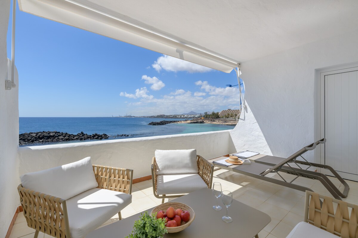 在這間獨特而放鬆的海景單間公寓/閣樓中擺脫日常生活。 露台非常適合享受和體驗戶外、餐桌、折疊椅、躺椅的愉快放鬆時刻,讓您手邊有所需的一切:您最喜歡的茶點、書籍等。 這間迷人的公寓位於Costa Teguise的Playa Roca住宅區。 公寓在住宿之間24小時保持空置。 配有社區泳池和方便的停車位。