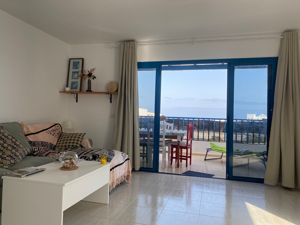 In the Los Molinos complex designed by César Manrique, we find this beautiful one-bedroom apartment on the ground floor without stairs, bright living room ,fully equipped kitchen, large terrace, beautiful and quiet panoramic views of the pool and the mountains. The apartment has WiFi and international tv channels. The complex has free parking, two swimming pools and playground. Located 4 minutes from Bastián beach, around it has a bank, supermarkets, shops and restaurants