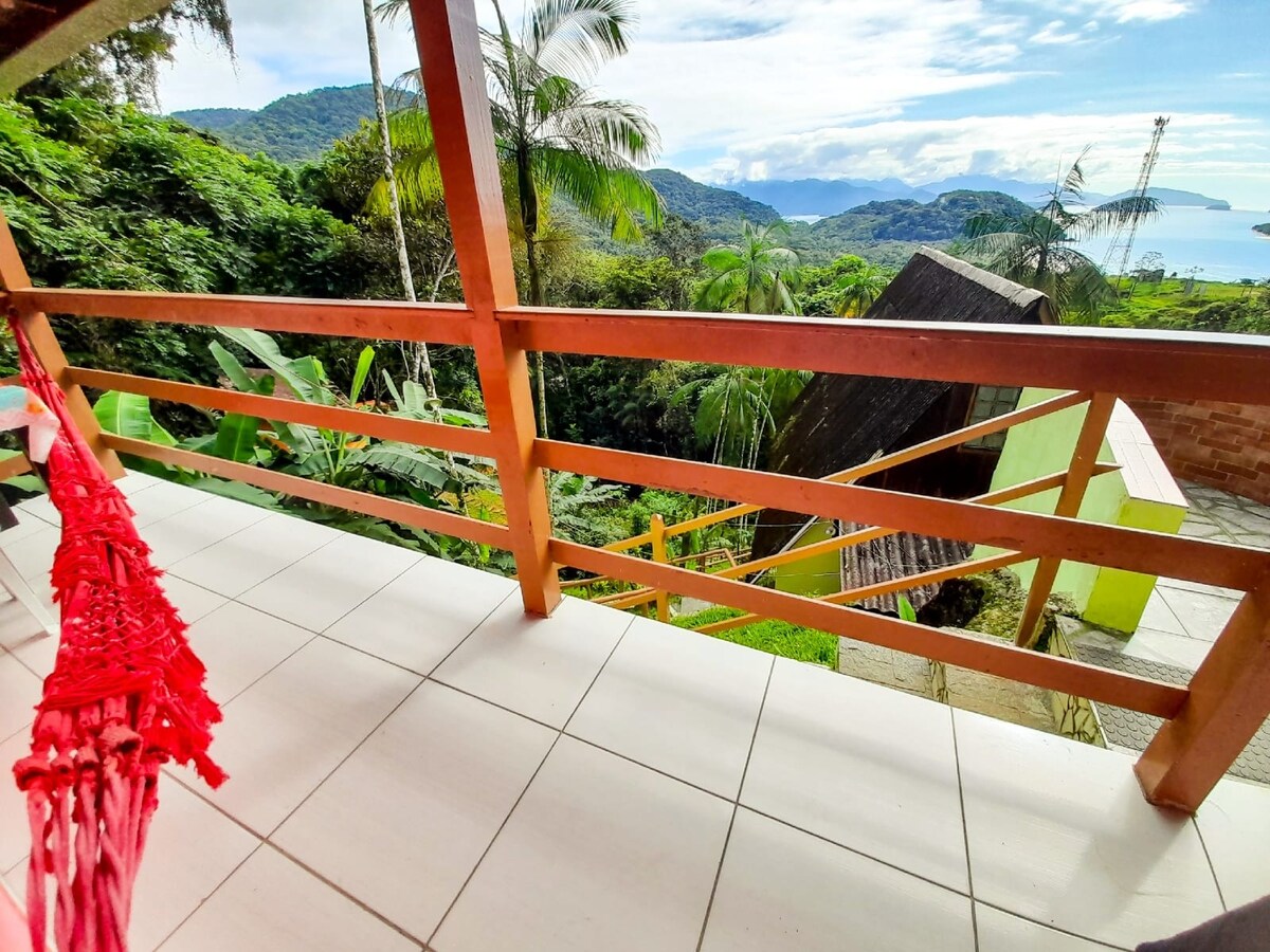 「Toca dos Gambás」是一個質樸而溫馨的客用住房,配有: - 5 間獨立房間(無衛浴) - 共用大空間,包括客廳、廚房、陽台和露台 - 3間衛浴供所有房客使用 它位於「亞伯拉罕」,步行10分鐘即可抵達碼頭。前往的街道有點陡峭,如果您攜帶了很多東西,可以在碼頭僱用一個搬運工來搬運。 這是一個簡單的空間,位於村莊較安靜的地方,四周環繞著大西洋森林的植被。