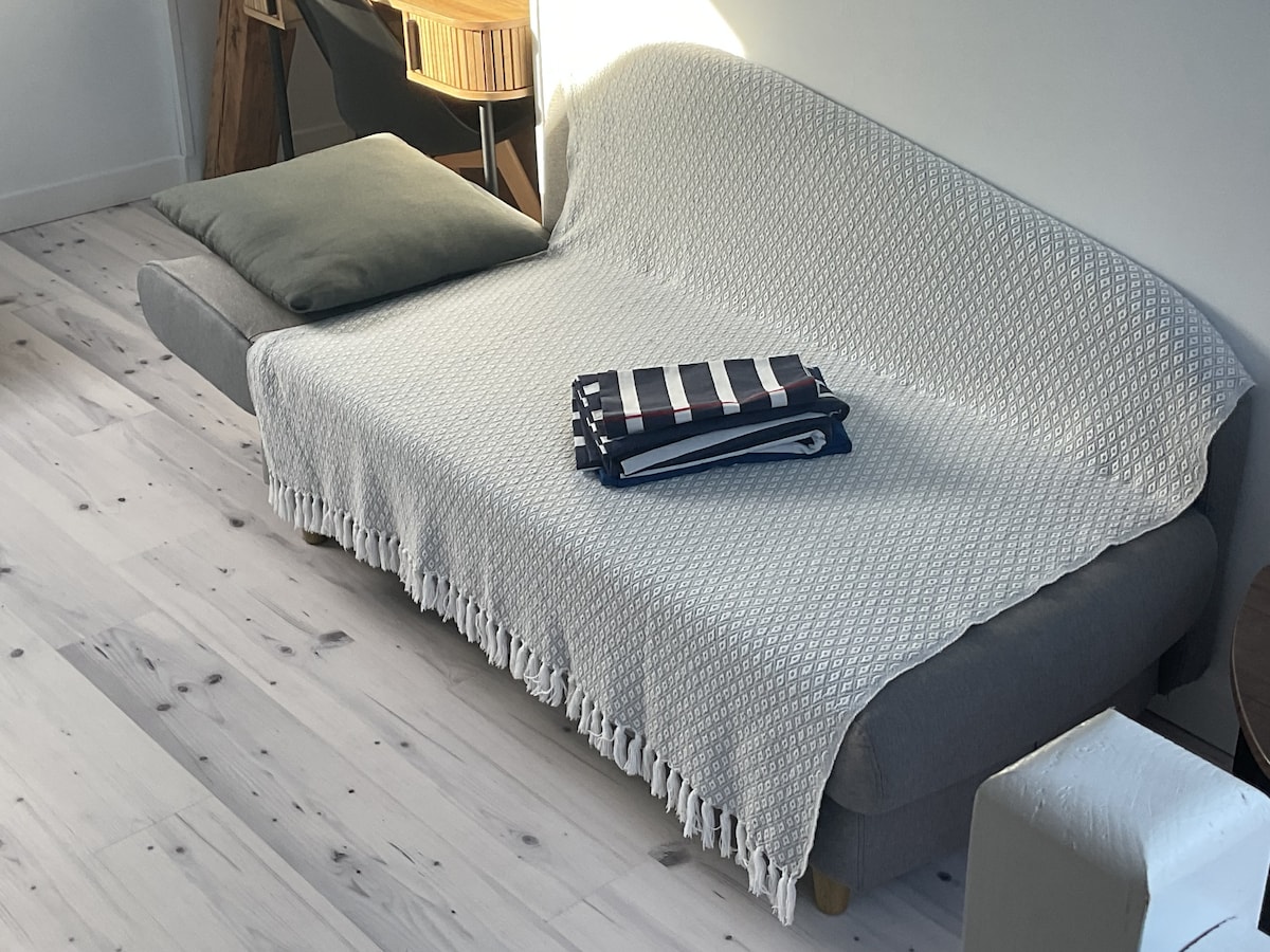 舒適的舊漁夫之家。地理位置優越,靠近餐廳、港口、便利設施,距離海灘 15 分鐘,距離火車站 18 分鐘,距離賭場 20 分鐘。一樓有餐廳和開放式廚房。一樓有客廳,配有可睡兩人的沙發床,以及帶廁所的淋浴間。二樓有一間配有雙人床的臥室和辦公空間。三樓是一個配有雙人床的閣樓空間。街邊免費停車、高速 WiFi、自助入住。