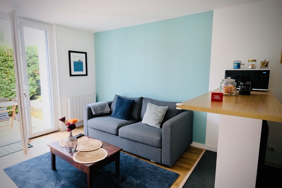「歡迎來到這間歷史悠久的65平方米公寓,它完美地位於Abbaye aux Dames和Caen港之間。 有2間臥室,最多可容納4位旅人。 它的私人入口讓它有小屋的魅力。 非常適合情侶、朋友、家庭或商務旅行入住。 100–400米內有免費街頭停車位和付費公共停車場。」