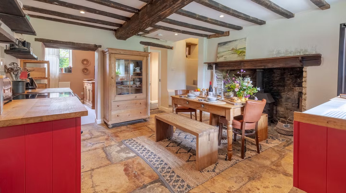 A Grade II listed 2-bedroom cottage, in a charming Cotswolds area, steeped in history and character, with original windows, traditional flagstone flooring, stone walls, oak beams and a fireplace. All rooms have lovely little window seats. Enjoy your own orchard at the end of the garden, perfect for a BBQ or picnic. The Cottage also includes free off-street parking. We love the local walks, views and the quintessential little Cotswolds high street only minutes walk from the cottage.