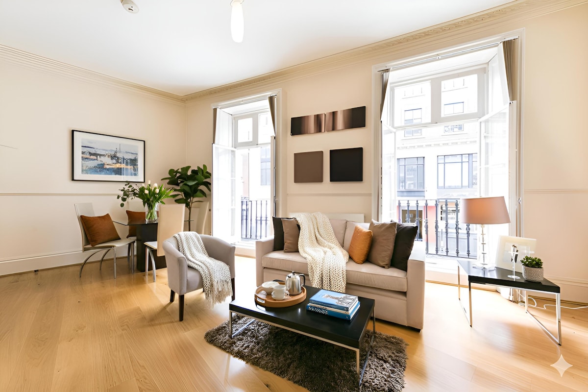 地理位置優越,距離柯芬園地鐵站5分鐘! 2間套房臥室/沙發床(可睡6人)。 寬敞的開放式休息室/豪華廚房 高速WiFi/50吋智慧電視 現場禮賓人員(星期一至星期五上午) 位於步行區安靜的位置。 「Piazza Residences」豪華公寓,位於考文特花園市中心的歷史建築,距離Soho、金融中心、特拉法加廣場、攝政街和泰晤士河僅幾分鐘路程。
