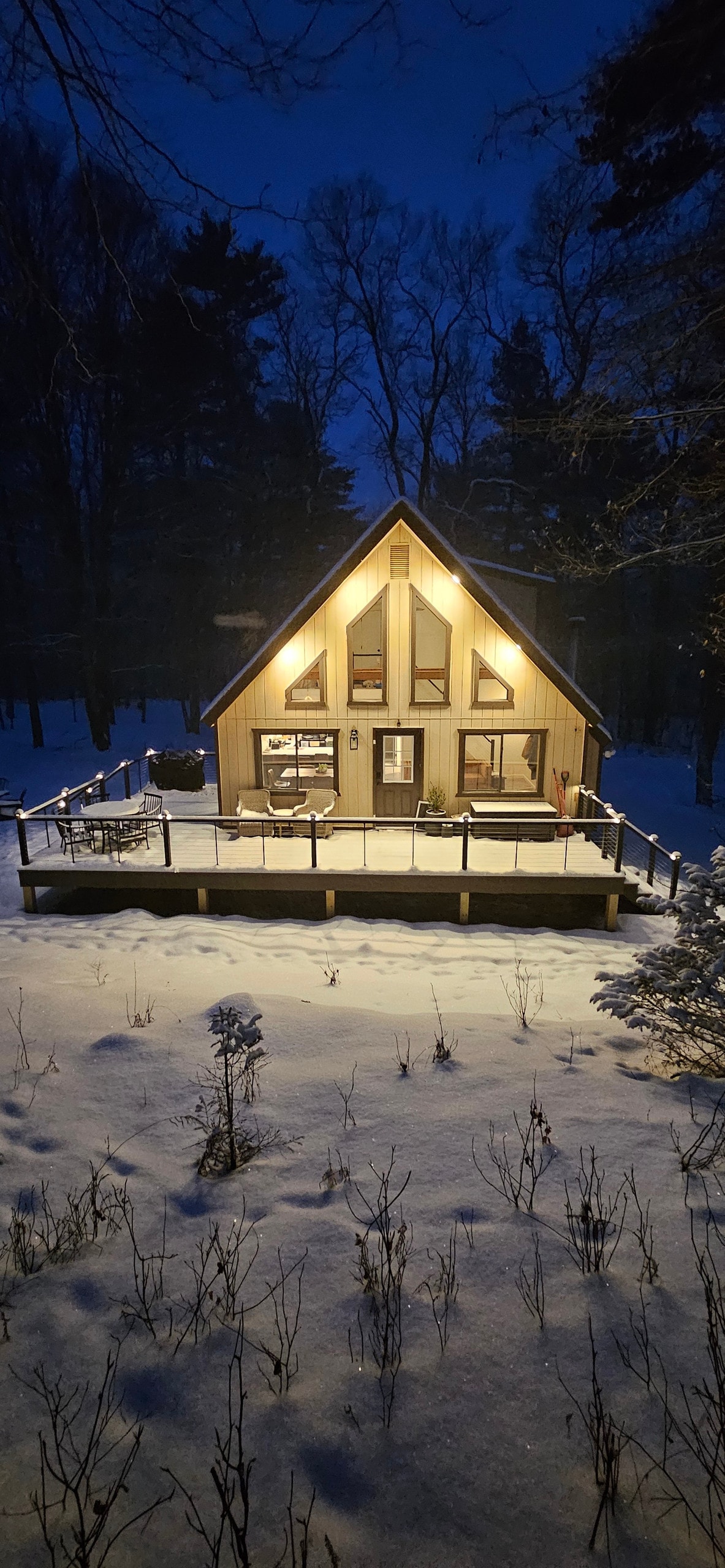 Enjoy this stylish Poconos cabin located a short distance from multiple lakes, skiing, and golf courses.. (please note Lake Naomi is PRIVATE and we dont have a membership) → Smart TV → Solid WiFi → Fully Equipped Kitchen → Hot Tub → Fire pit & Awesome Deck → 13 miles from Snow Ridge Village → 3 miles to Timber trails and Pinecrest Lake Gold Course → 10 mins to Kalahari Waterpark/waterfalls → 20 mins to Camelback Mountain Adventures STR Permit Number #020578 Minimum Age to Rent: 25