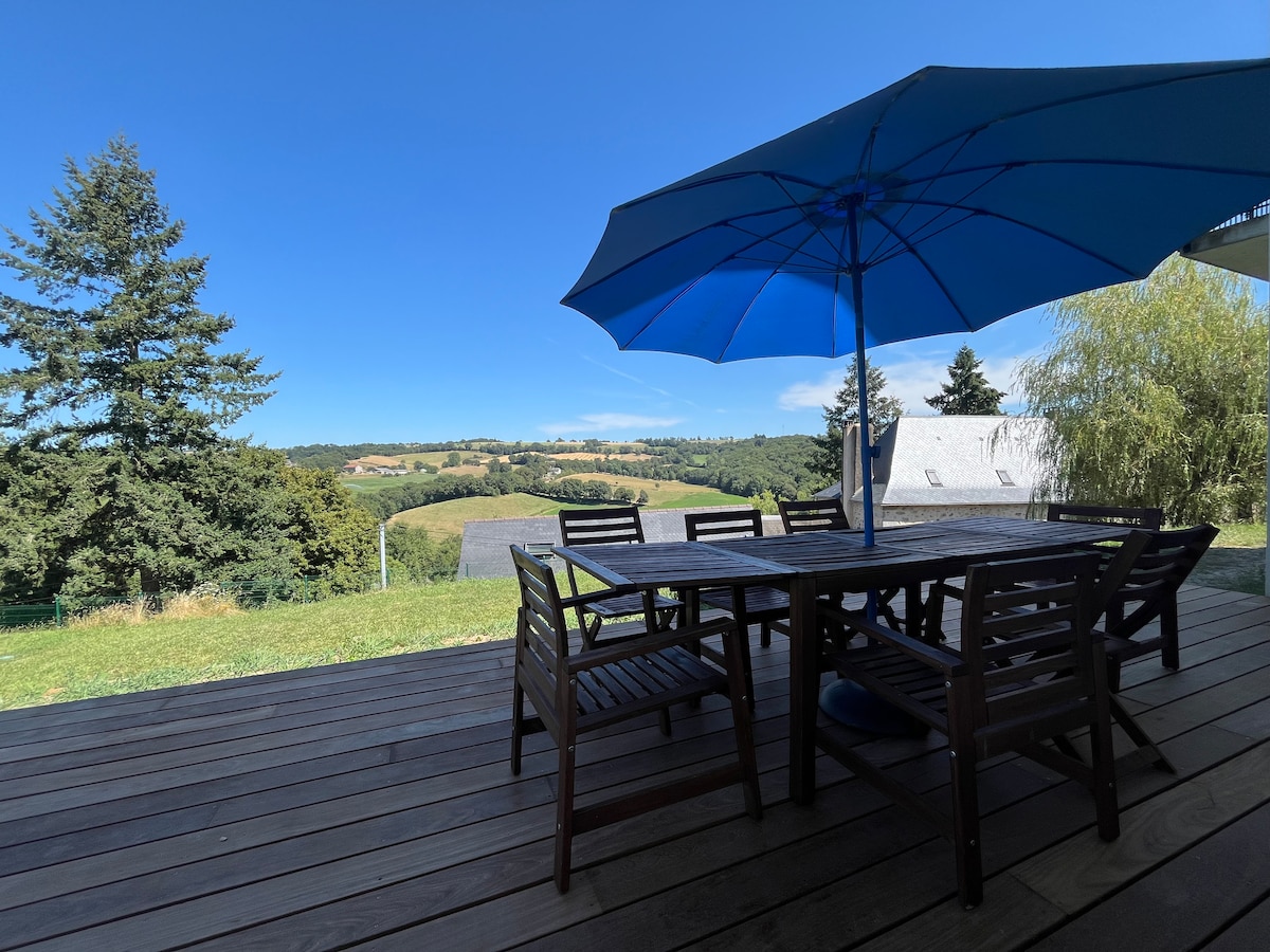 Notre maison se situe au lieu-dit Le Couquet, commune de Capdenac-Le-Haut (46), aux portes du Lot et de l'Aveyron, joli village médiéval fortifié qui surplombe la rivière Lot et faisant parti des plus beaux villages de France. Le logement proposé se situe à l'étage de notre maison. Entièrement rénové, il est indépendant et accessible par un escalier extérieur. Il dispose d'une terrasse qui surplombe la piscine et offre un beau panorama sur la Vallée du Lot. Prévu pour 2 adultes