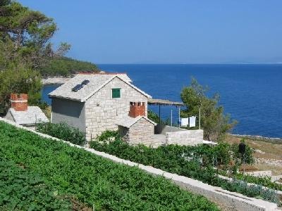 Charming house in Lovrečina bay near Postira is perfect runaway from crowded city. You can enjoy in nature, peace and quiet. Distance from the beach is about 300 m. The house is surrounded by a garden from which you can pick fresh vegetables and fruits. On first floor is one bedroom with 2 beds and the kitchen and on the ground floor is second bedroom with double bed and second kitchen. Bathroom is also on the ground floor separated from bedroom. Pets are extra charged upon arrival.